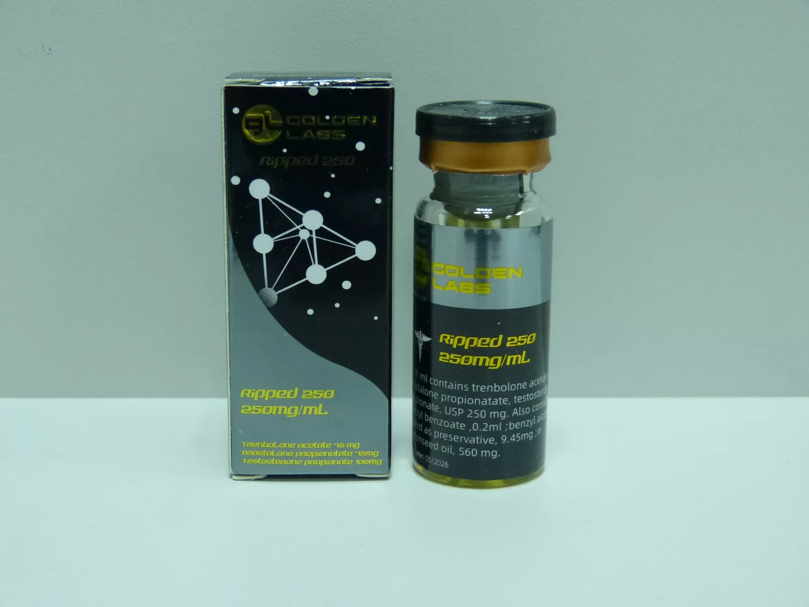 Ripped Golden Labs to zaawansowany preparat anaboliczny, który ma w skladzie trzy potężne sterydy: testosteron, trenbolon i masteron. Ten zaawansowany środek został stworzony do intensyfikacji redukcji tkanki tłuszczowej,  wzmacniania siły i oraz wzrostu suchej masy mięśniowej.